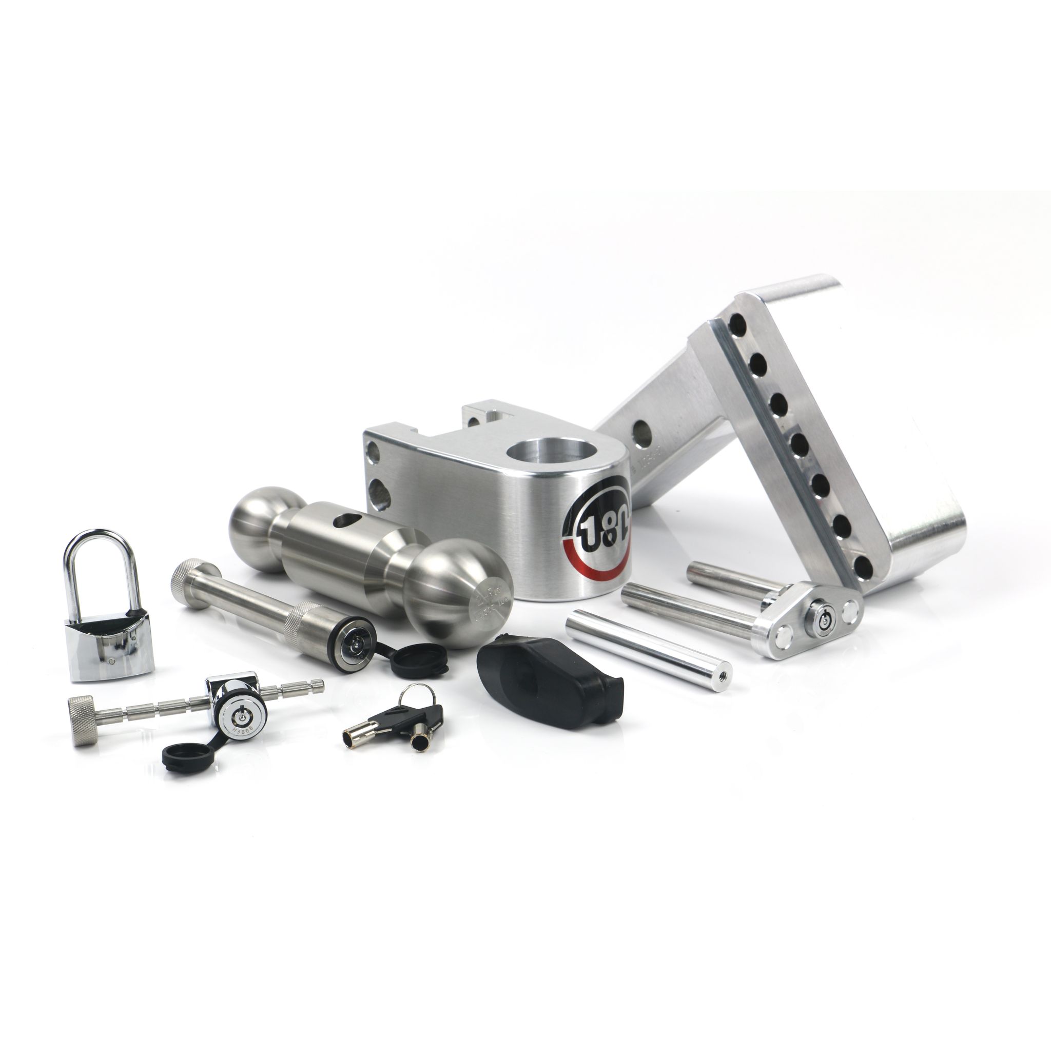 180 Hitch – Adjustable Drop Hitch w/ 4" Drop & 2" Shank + Stainless Steel Combo Balls (2" & 2 5/16") – 12,500 lbs GTW with Keyed-Alike Hitch Pin Lock, Coupler Latch Lock, & Padlock