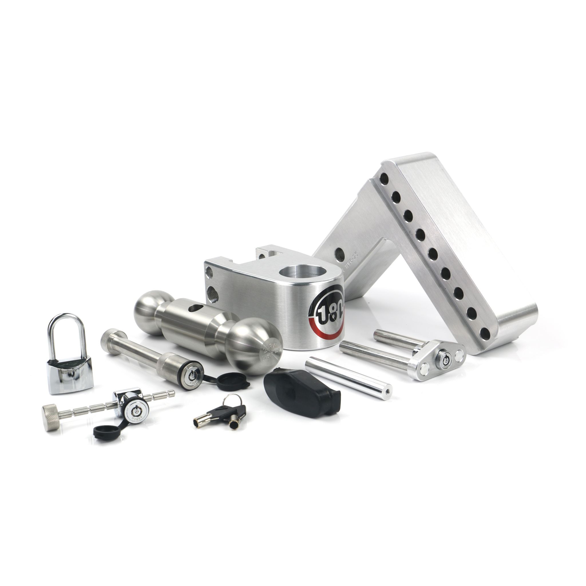 180 Hitch – Adjustable Drop Hitch w/ 6" Drop & 2.5" Shank + Stainless Steel Combo Balls (2" & 2 5/16") – 18,500 lbs GTW with Keyed-Alike Hitch Pin Lock, Coupler Latch Lock, & Padlock