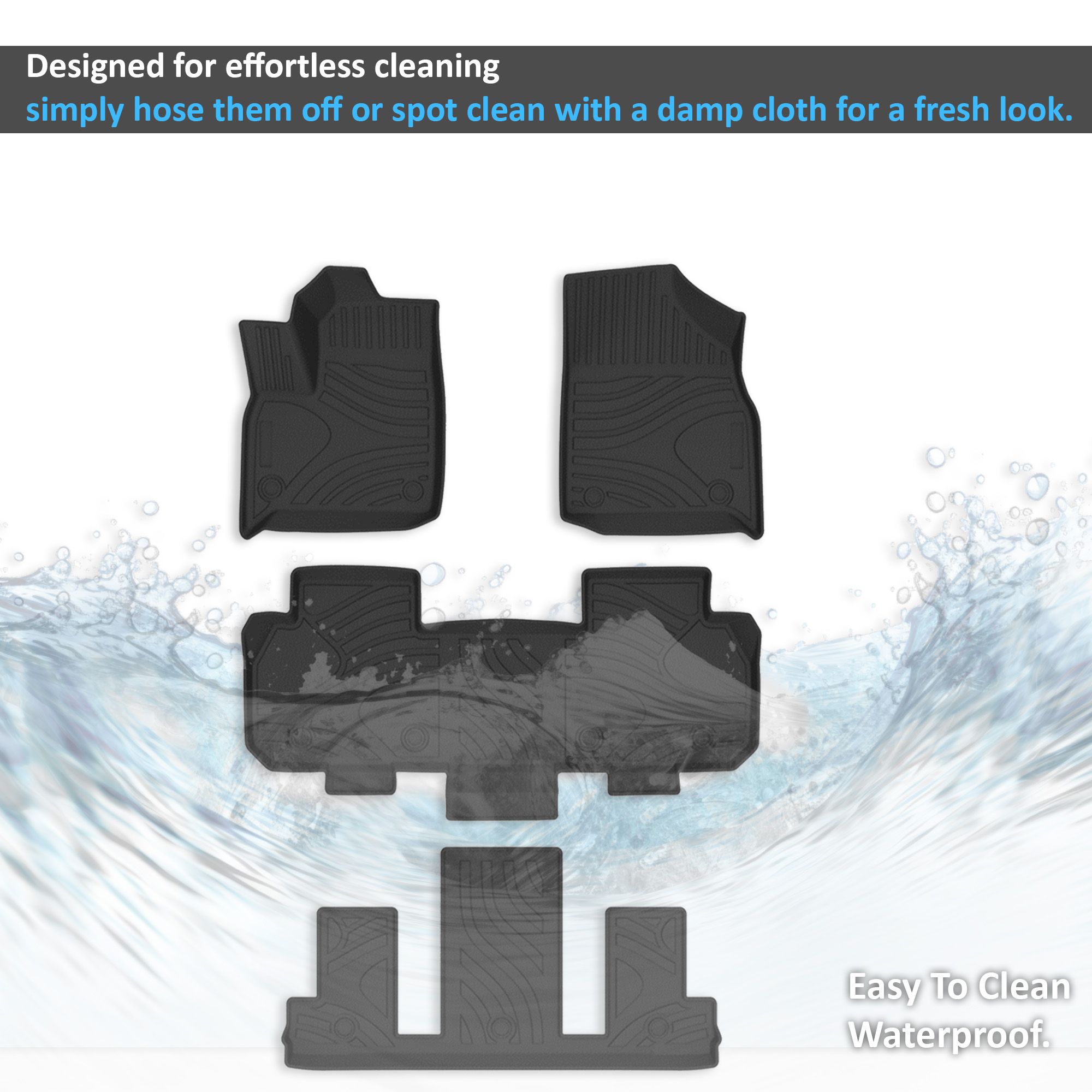 Black Horse Off Road Totaliner Heavy Duty Floor Liner Black TPE Anti-Skid Rug Liner 6-seats / 2nd Row Bucket Seats Material Thicknes: 3.5mm 3 Rows