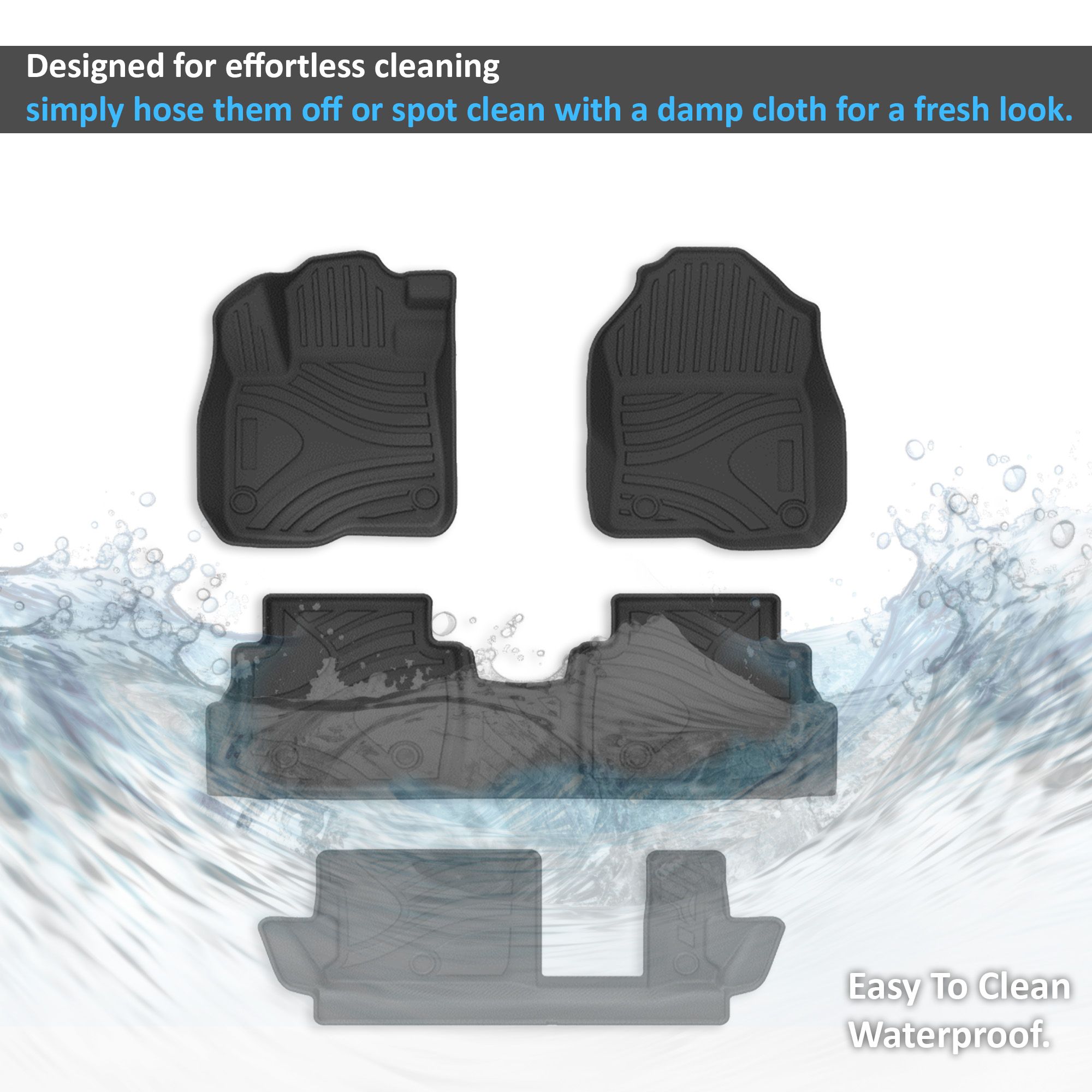 Black Horse Off Road Totaliner Heavy Duty Floor Liner Black TPE Anti-Skid Rug Liner 7-seats Material Thicknes: 3.5mm 3 Rows