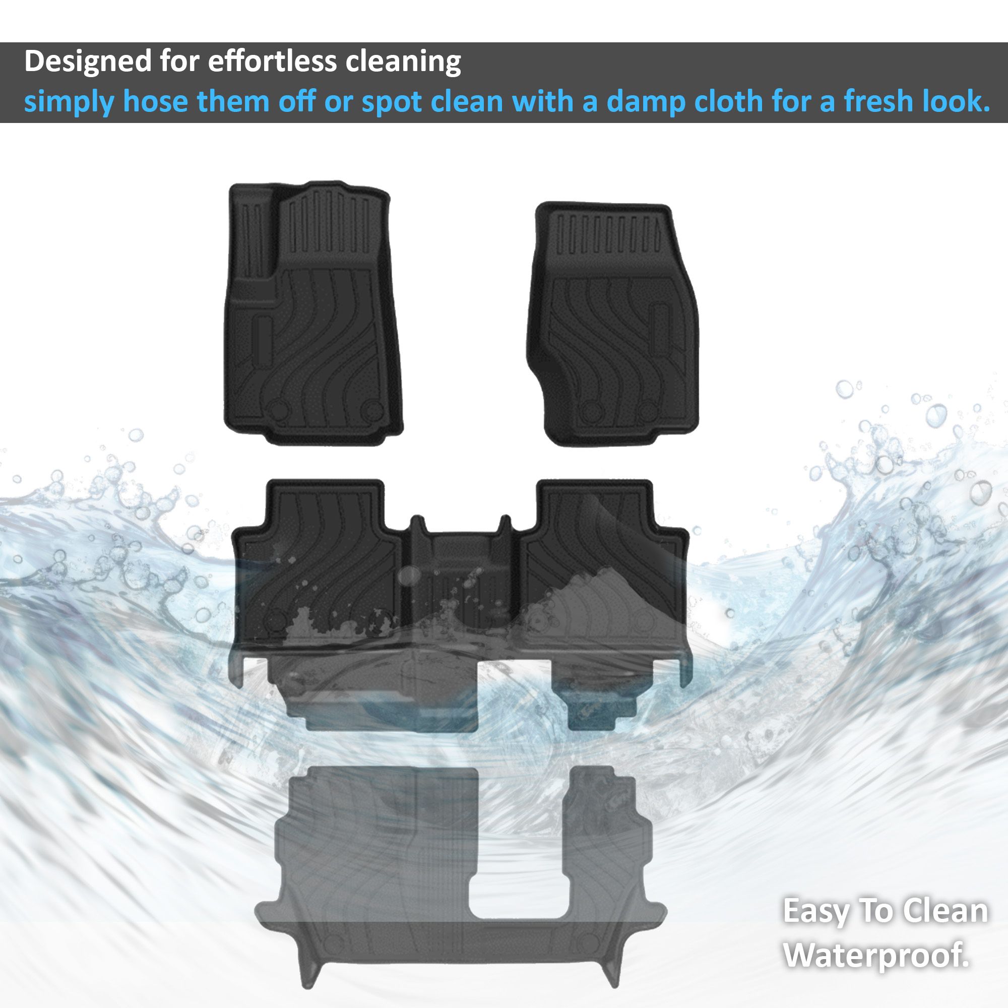 Black Horse Off Road Totaliner Heavy Duty Floor Liner Black TPE Anti-Skid Rug Liner 7-seats Material Thicknes: 3.5mm 3 Rows