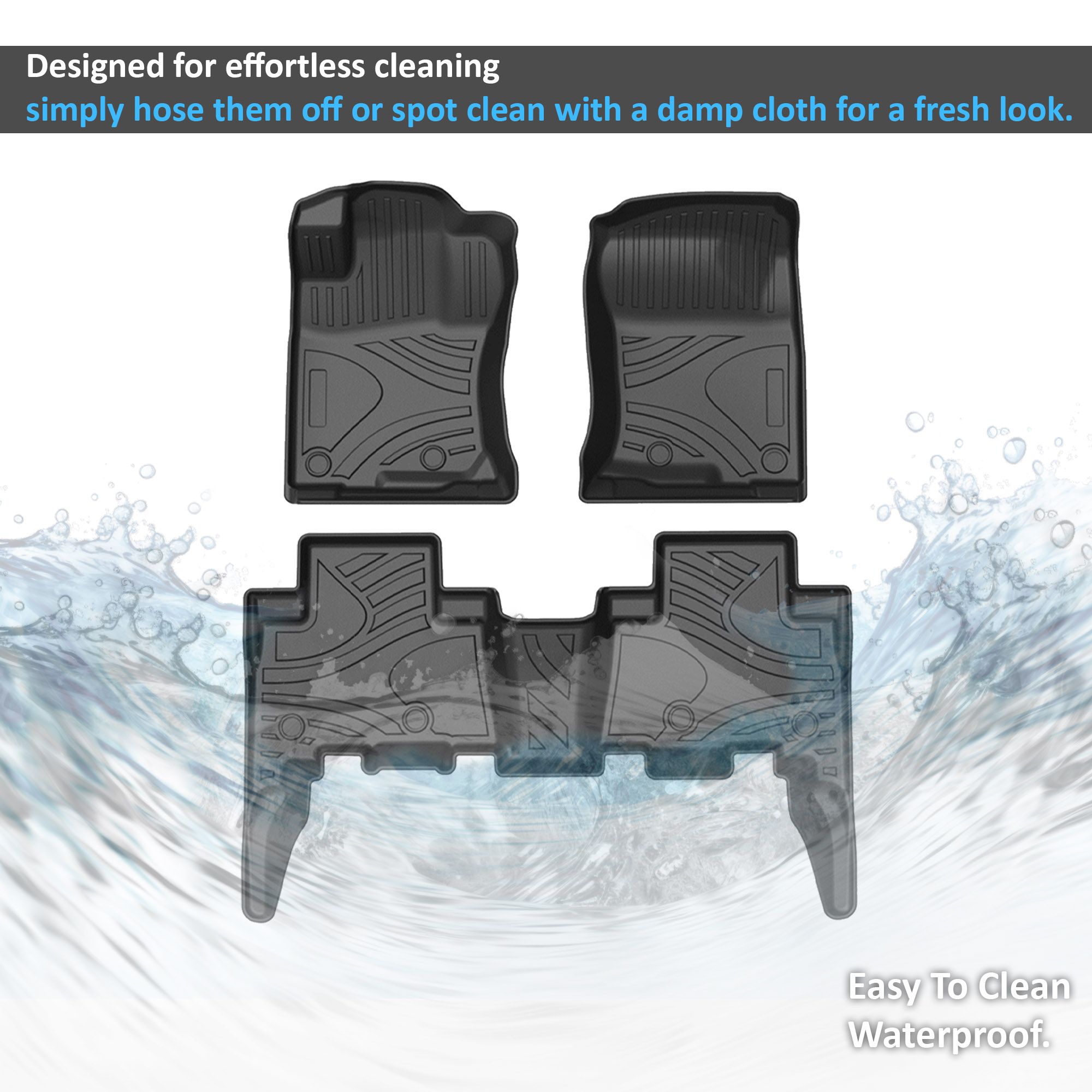 Black Horse Off Road Totaliner Heavy Duty Floor Liner Black TPE Anti-Skid Rug Liner 5-seats Material Thicknes: 3.5mm 2 Rows