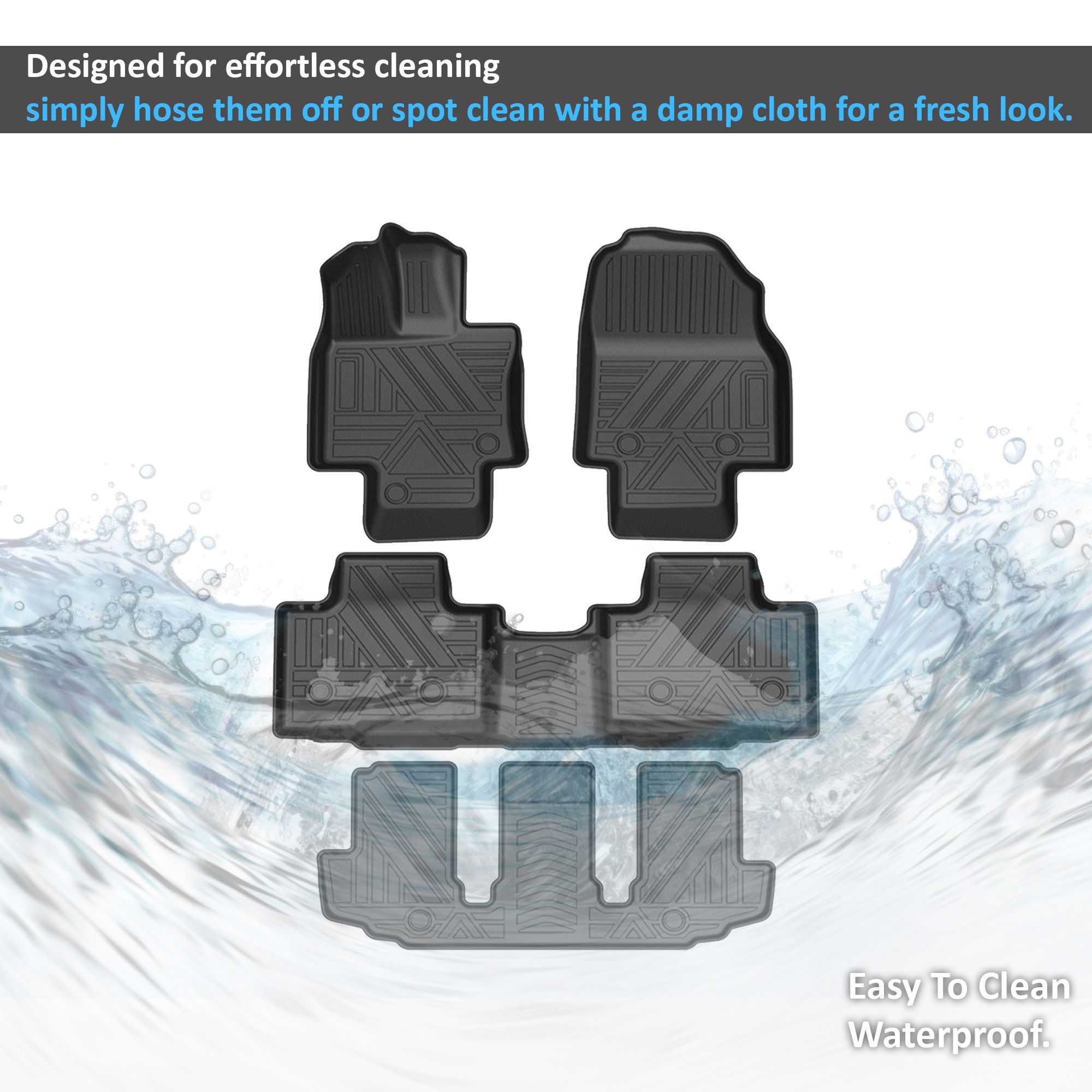 Black Horse Off Road Totaliner Heavy Duty Floor Liner Black TPE Anti-Skid Rug Liner 7-seats with Center Console Material Thicknes: 3.5mm 3 Rows