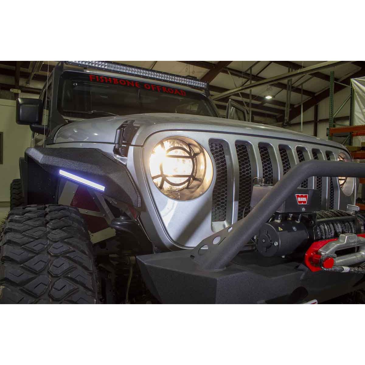 Fits 2018 to Current JL Wrangler, Rubicon and Unlimited, 2020 to Current JT Gladiator. Black powder coated Aluminum. Designed to mount over OEM headlights. Provides extra protection from off-road trees and brush.