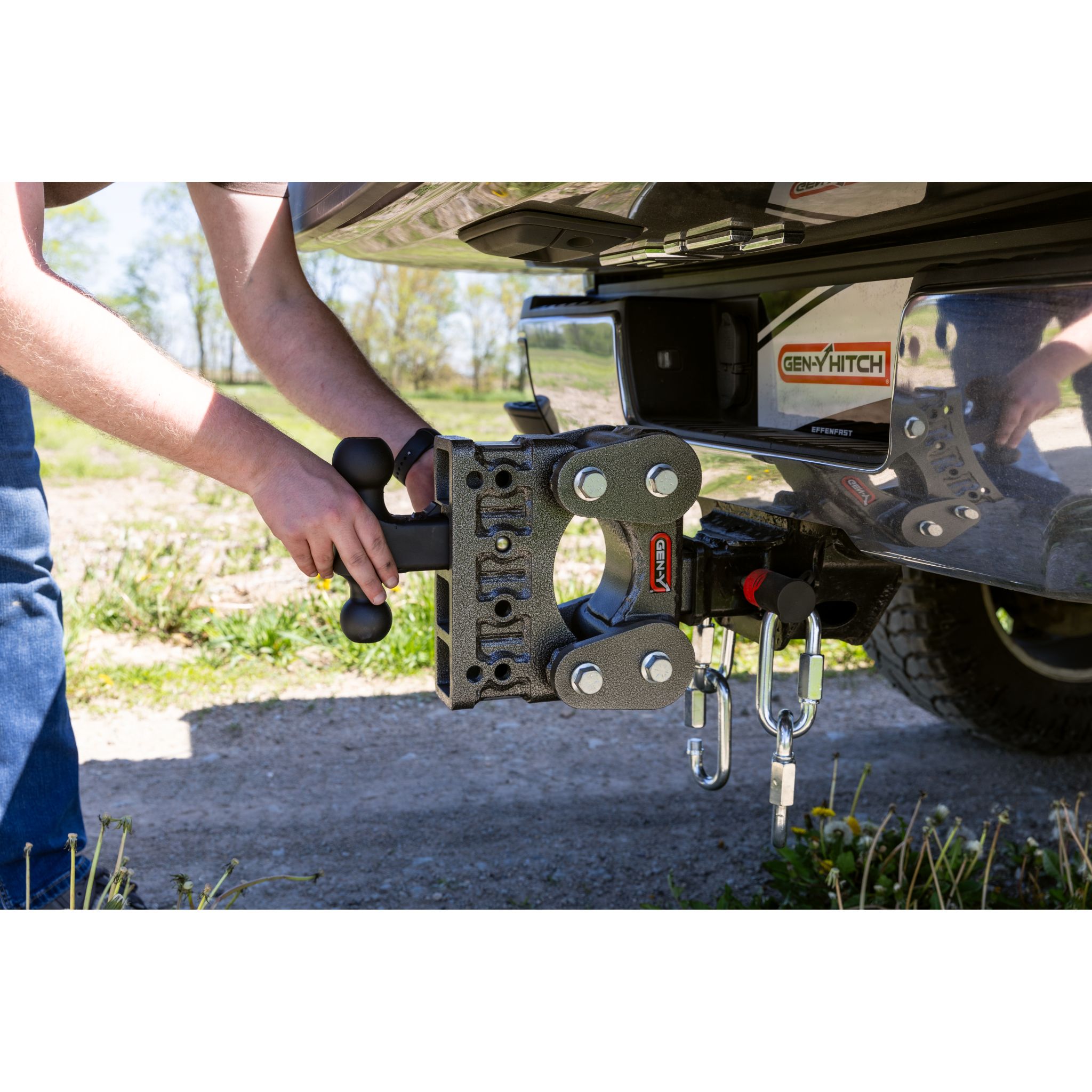 GEN-Y's Boss Adjustable Drop Hitches start at 10,000 LB towing capacity and go up to 32,000 LB towing capacity. The Torsion-Flex Drop Hitch is the best hitch for ultimate control and safety while towing any bumper style trailer on the market including pintle style couplings.