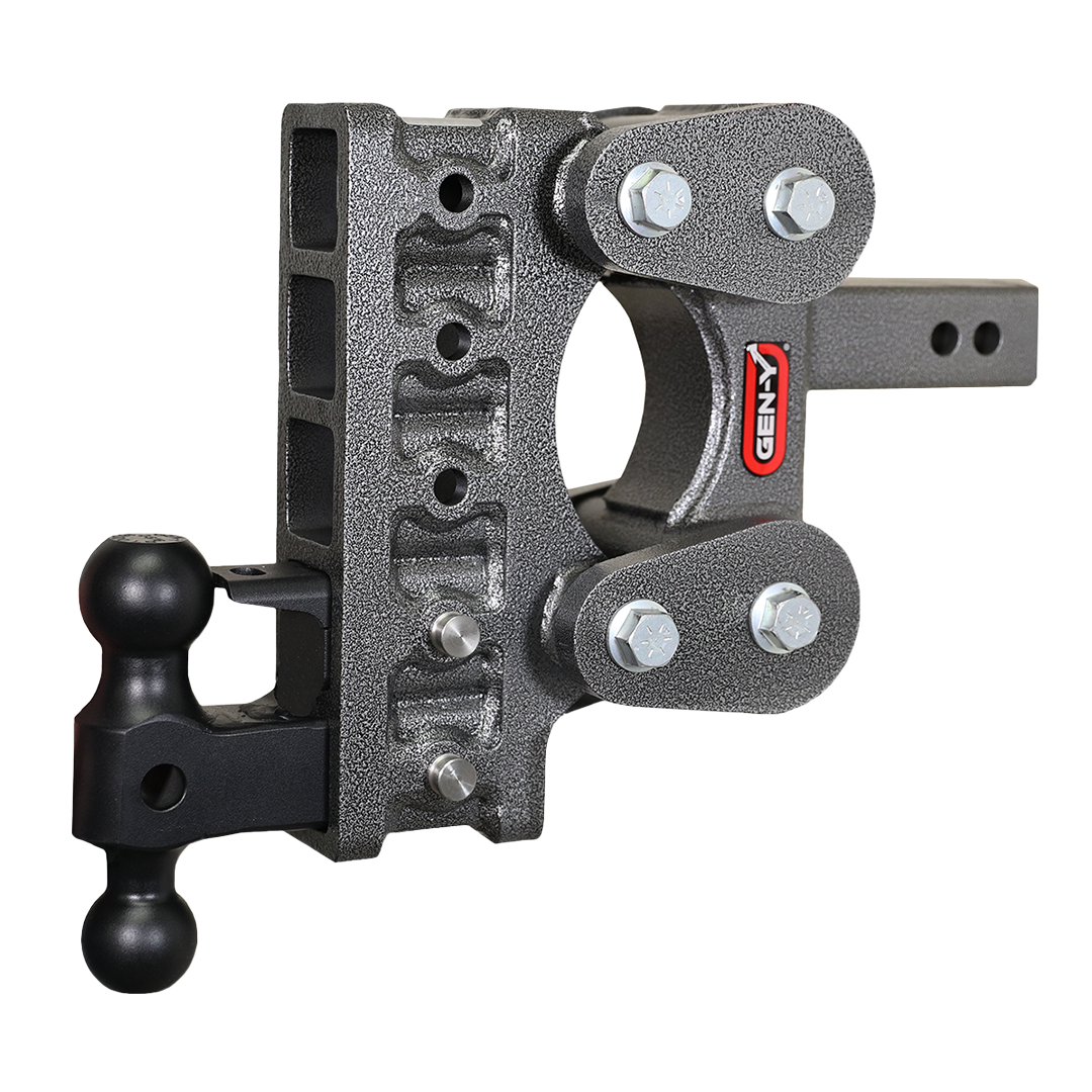 GEN-Y's Boss Adjustable Drop Hitches start at 10,000 LB towing capacity and go up to 32,000 LB towing capacity. The Torsion-Flex Drop Hitch is the best hitch for ultimate control and safety while towing any bumper style trailer on the market including pintle style couplings.