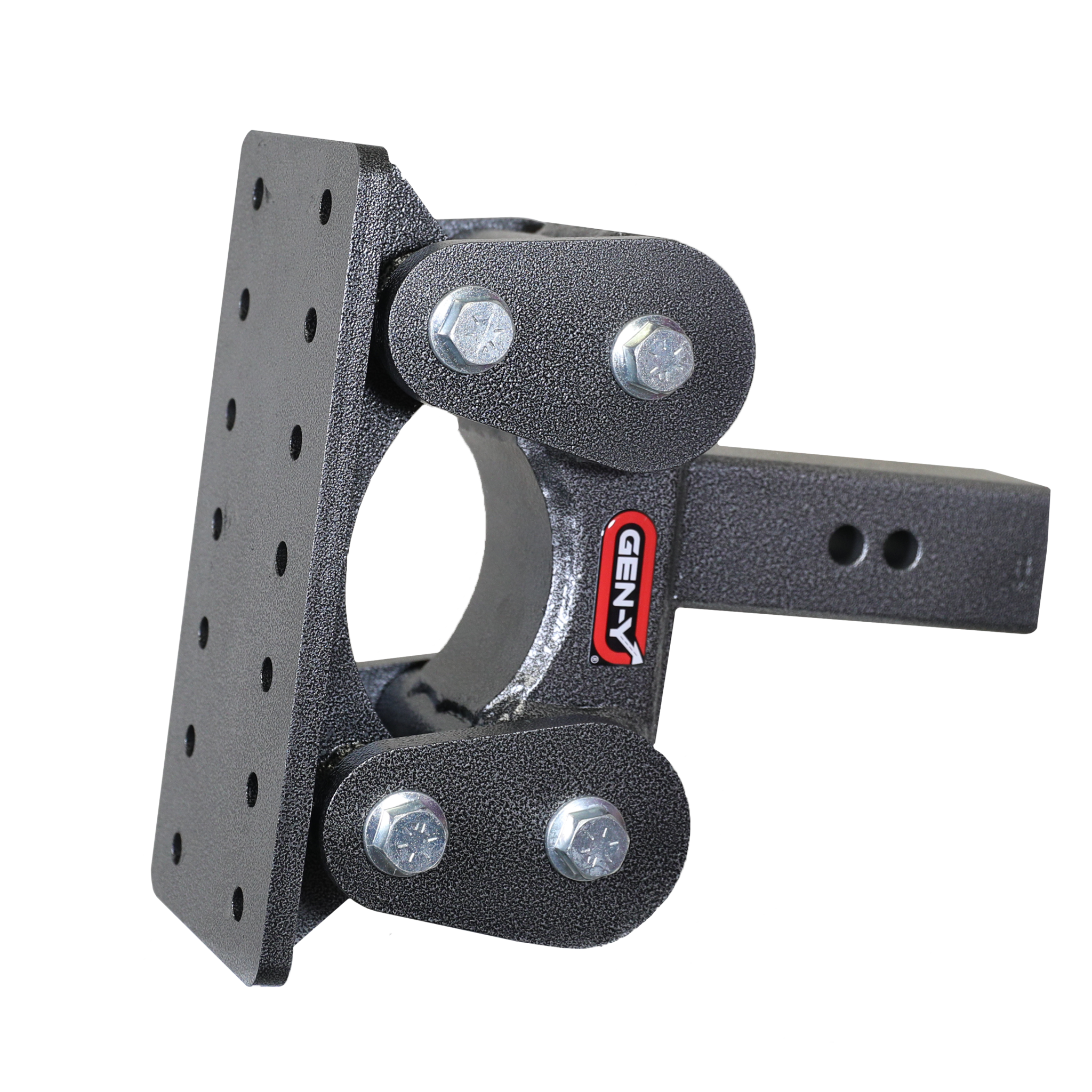 The BOSS Torsion-Flex Pintle Plate is a result of the innovative fusion of the MEGA-DUTY drop hitch and TORSION-FLEX technology. Aside from being heavy-duty, fully adjustable, and versatile, the BOSS also features rubber torsion arms. This benefit allows for only 10% of the trailer's inertia to be transferred compared to 100% you get from other hard connection hitches!
