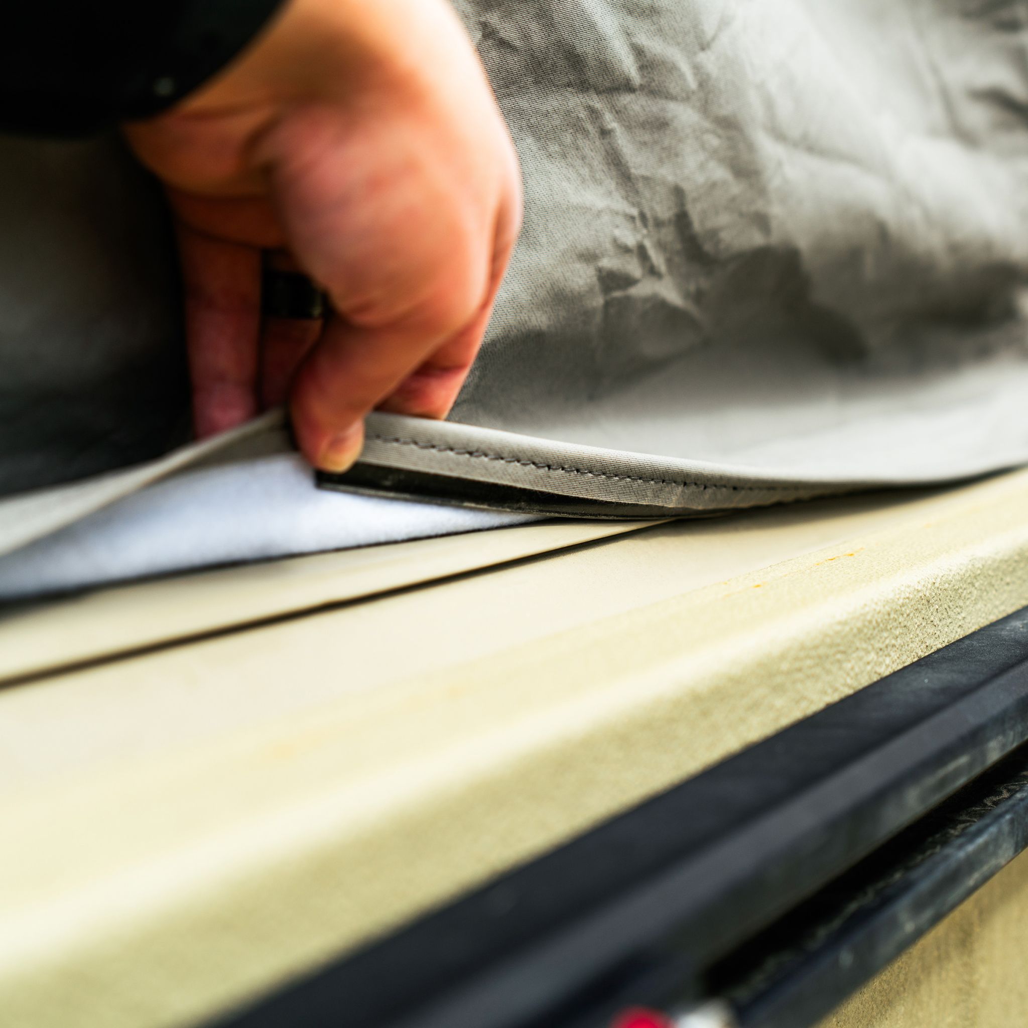 Constructed with new space age fabric, Smittybilt's Climate Cab Cover protects your vehicle from the elements while allowing the paint to breathe. Soft and durable fabric pampers paint finish and protects from sun, dirt, dust, moisture and pollution. The unique diamond bond pattern allows damaging trapped air & moisture to escape preventing paint deterioration. UV protection against sun and heat buildup and the spun bond polypropylene is a naturally water repellent material. Double stitched elastic hems for a custom fit.