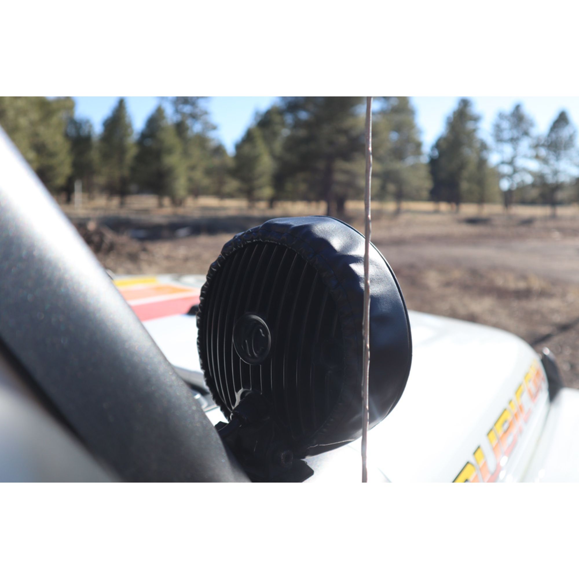 KC 6" Black Vinyl with yellow KC Logo fit securely on 6" Round lights. light covers are designed not only to bring customized style to your vehicle but also protect and keep lights clean. Soft Vinyl covers are sold as a pair.