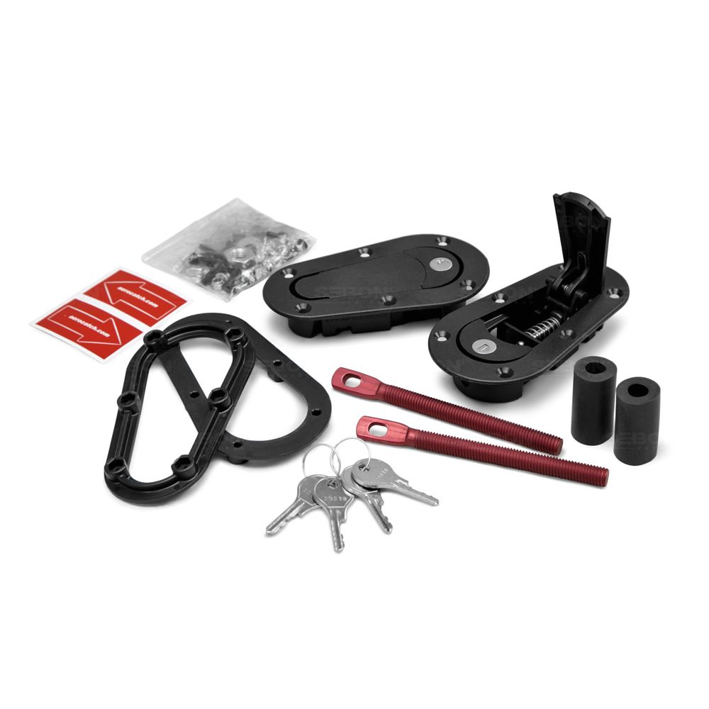 AeroCatch Plus Flush Hood Latch and Pin Kit – Black – with lock – Seibon Edition