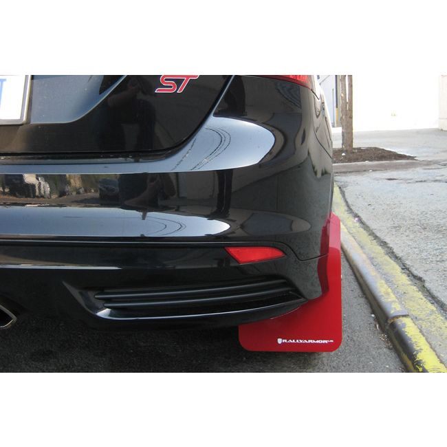 Rally Armor MF27-UR-BLK/RD-X – 2013-2019 Ford Focus SE, Titanium, ST, RS – Black Mud Flap/Altered Font Red Logo