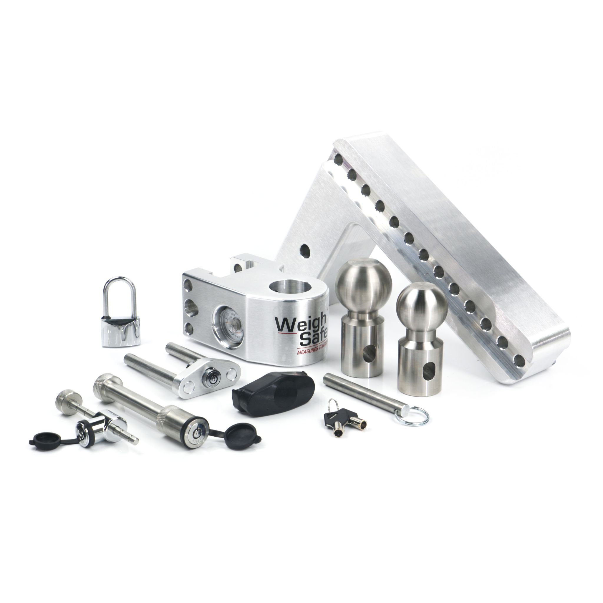 Weigh Safe Aluminum Adjustable Ball Mount – Features Built-in Scale to Measure Tongue Weight – 10" Drop & 3" Shank with Keyed-Alike Hitch Pin Lock, Coupler Latch Lock, & Padlock